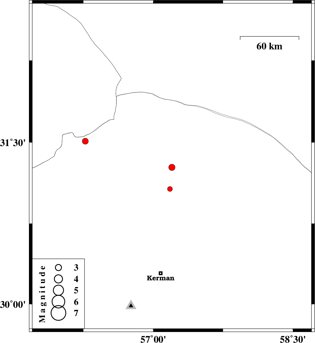 | 2015/01/31 | 02:53:14.7 | 06:23:14.7 | 31.07 | 57.18 | 14 | ML2.4 | Kerman Province, 41 km South-East of Ravar | ||
