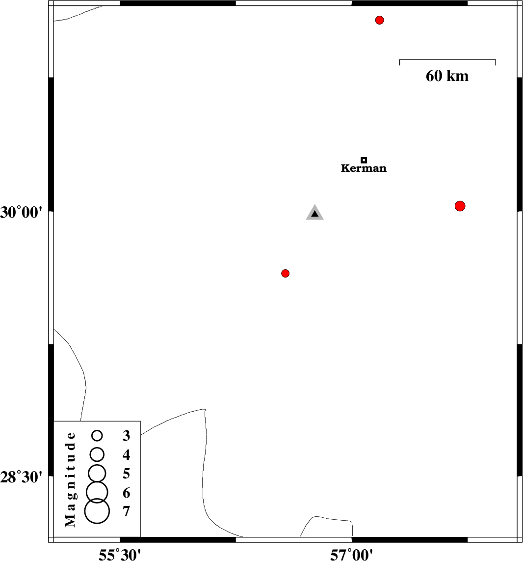 | 2015/02/04 | 02:18:35.7 | 05:48:35.7 | 30.03 | 57.7 | 16 | ML3 | Kerman Province, 66 km South-East of Kerman | ||
