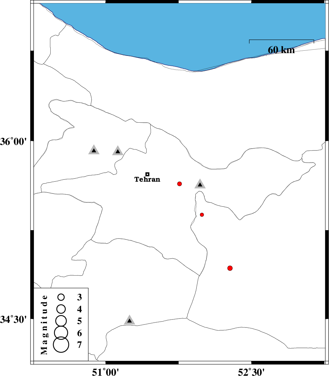 | 2015/02/06 | 16:10:39.9 | 19:40:39.9 | 35.38 | 51.99 | 14 | ML1.7 | Semnan Province, 30 km East of Varamin | ||