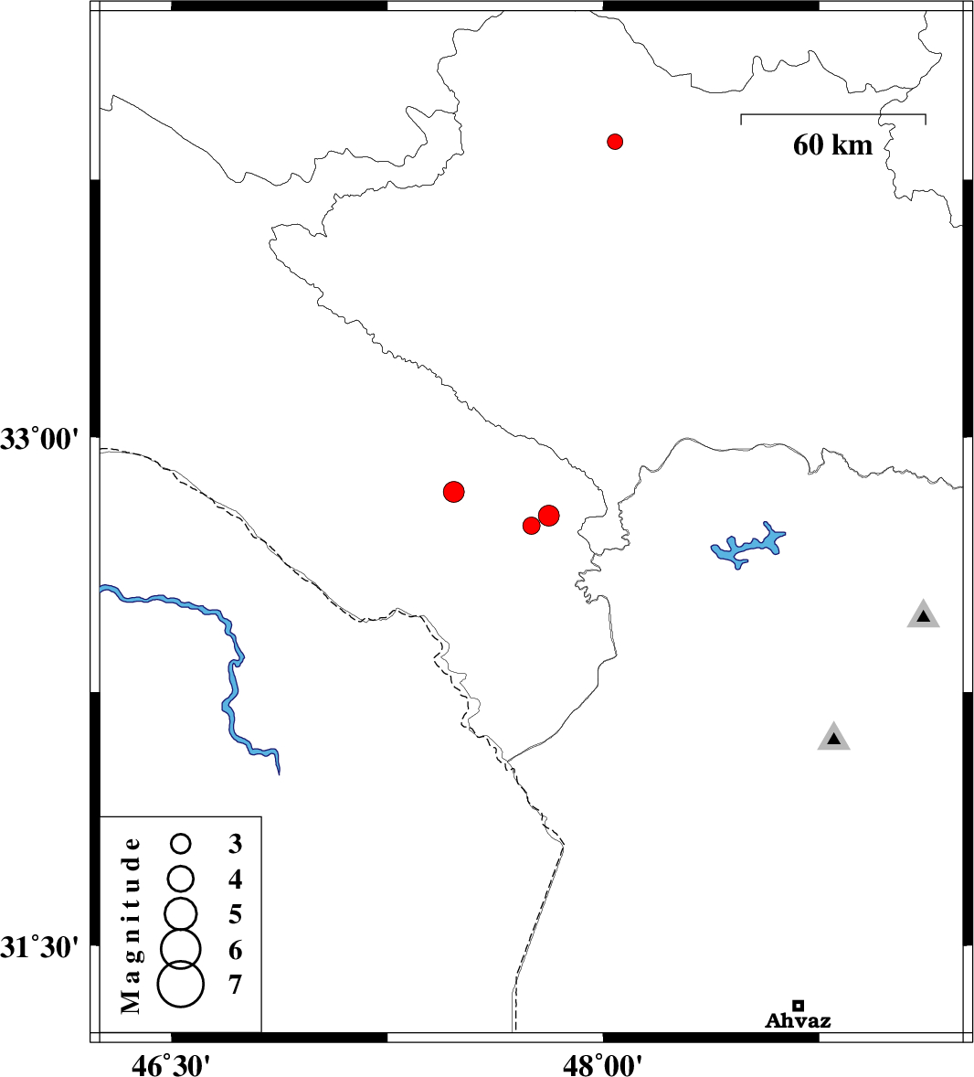 | 2015/02/05 | 04:00:45.2 | 07:30:45.2 | 32.84 | 47.48 | 14 | ML3.2 | Ilam Province, 10 km Abdanan | ||