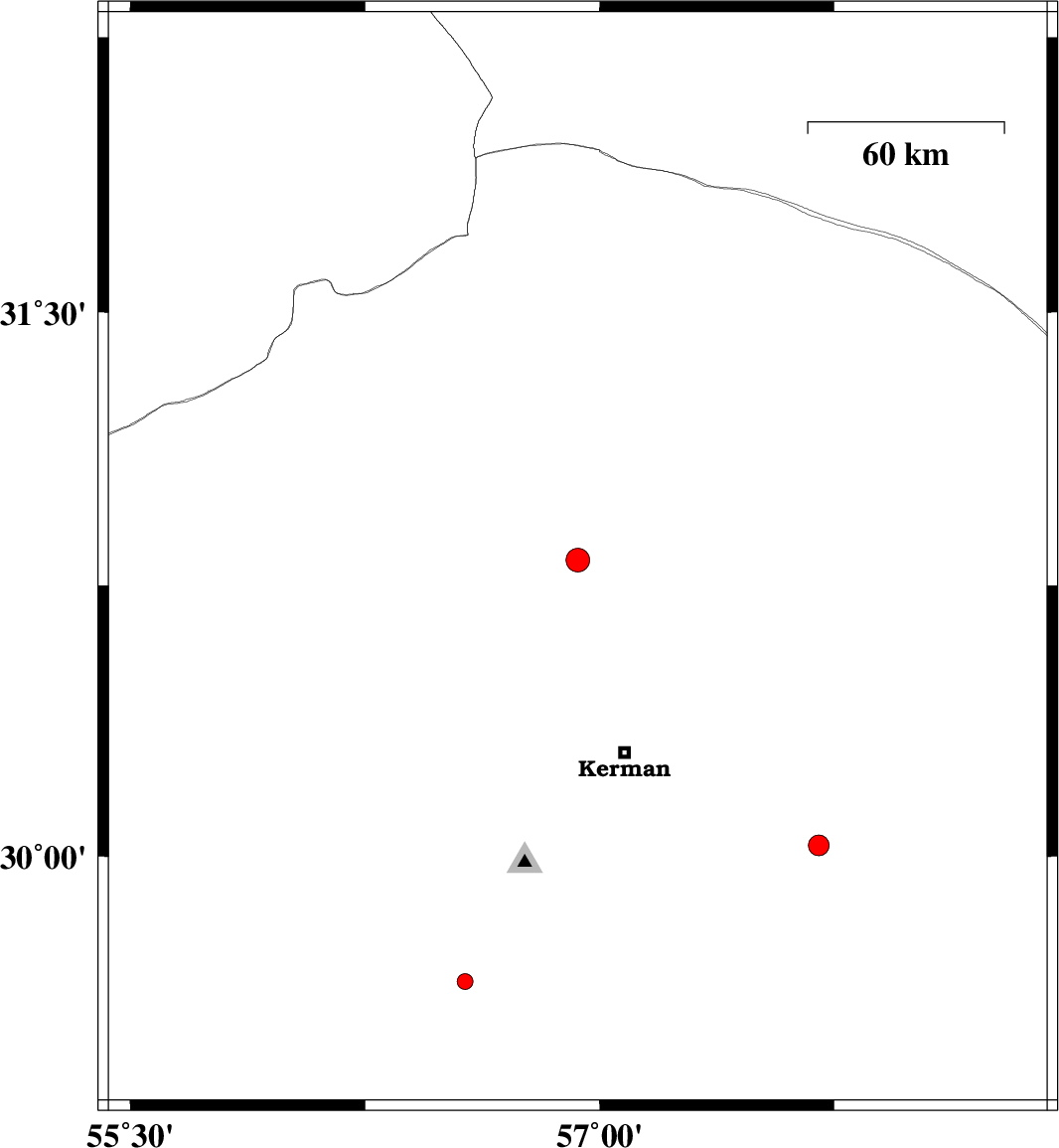 | 2015/02/04 | 02:18:35.7 | 05:48:35.7 | 30.03 | 57.7 | 16 | ML3 | Kerman Province, 66 km South-East of Kerman |