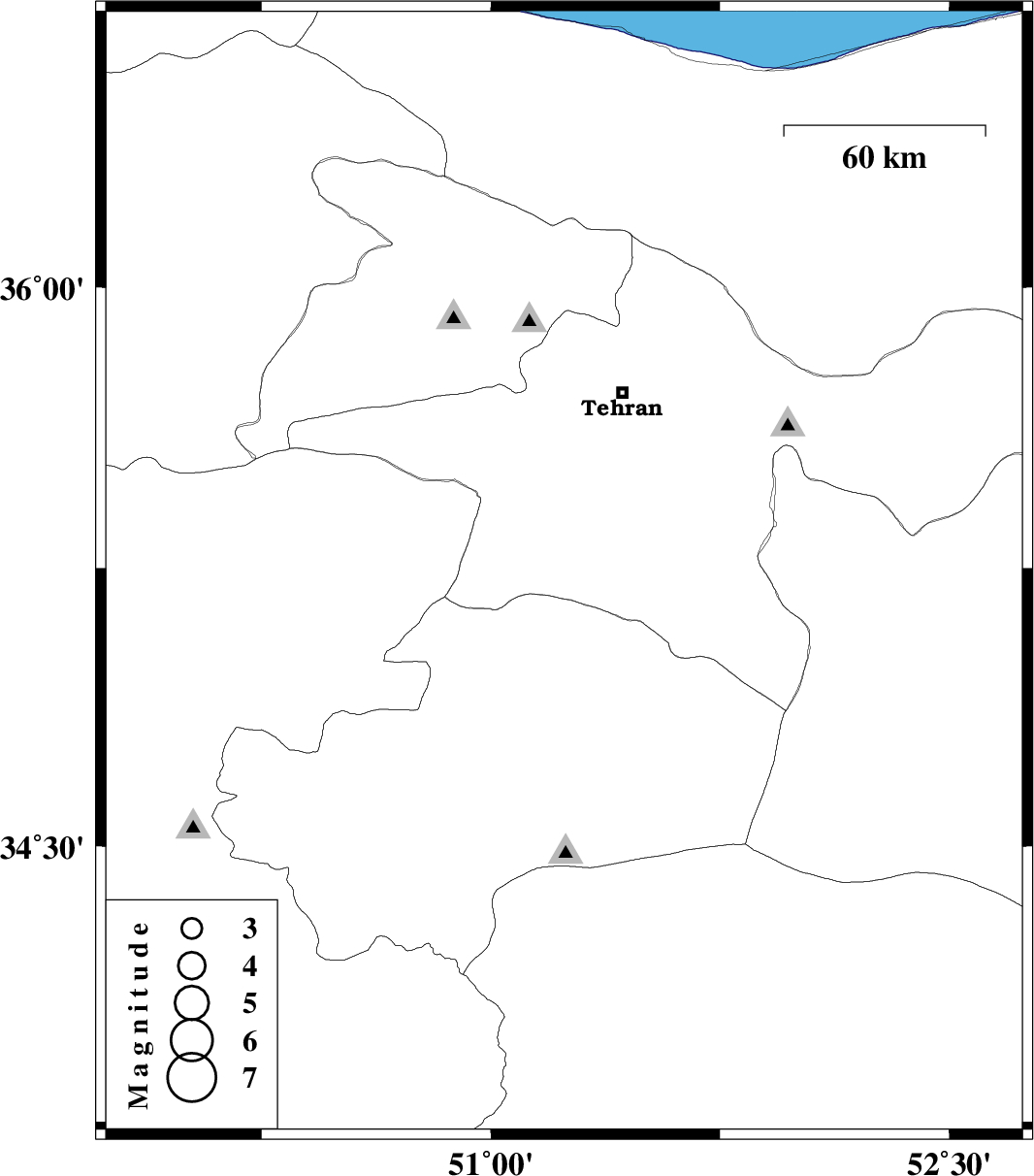 | 2015/02/18 | 20:06:24.5 | 23:36:24.5 | 35.23 | 51.24 | 14 | ML2.2 | Tehran Province, 39 km South of Eslamshahr |