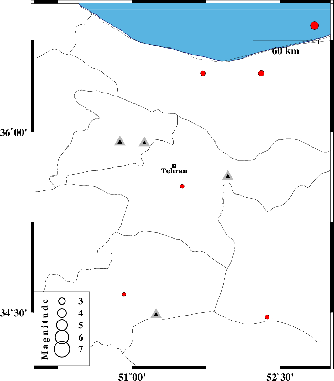 | 2015/03/02 | 22:38:37.3 | 02:08:37.3 | 36.87 | 52.85 | 14 | ML3.6 | Caspian Sea, 26 km North of Joybar | ||