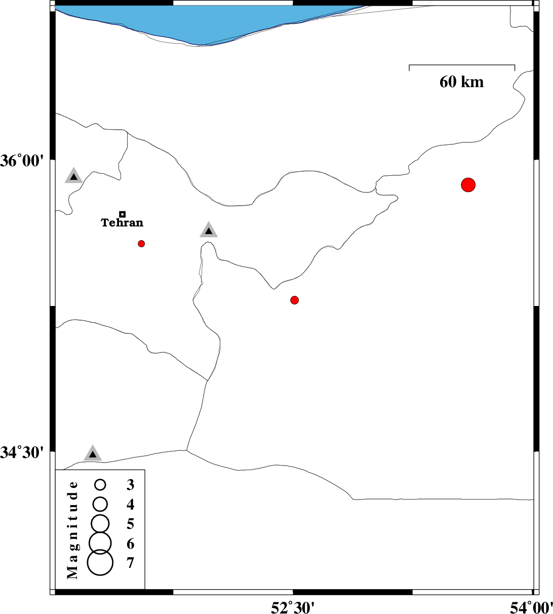 | 2015/03/16 | 19:56:00.3 | 23:26:00.3 | 35.28 | 52.51 | 14 | ML2.3 | Semnan Province, 17 km East of Garmsar | ||