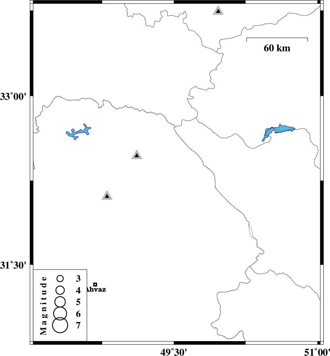 | 2015/03/18 | 13:00:53.3 | 16:30:53.3 | 32.31 | 49.53 | 14 | ML2.7 | Khoozestan Province, 41 km East of Lali |