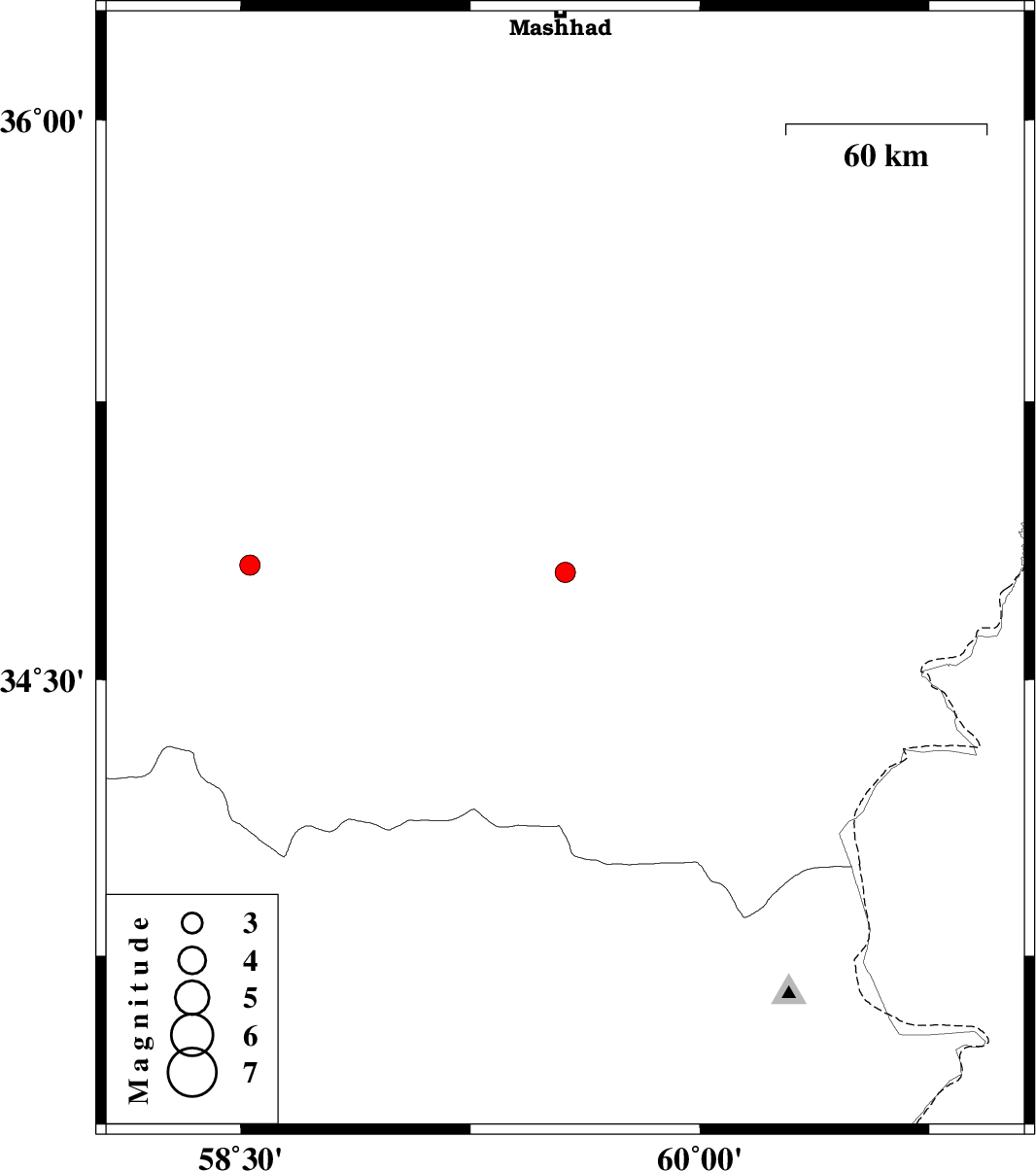 | 2015/03/11 | 22:22:42.6 | 01:52:42.6 | 34.81 | 58.53 | 14 | ML3 | Khorasan(center) Province, 48 km South of Kashmar |