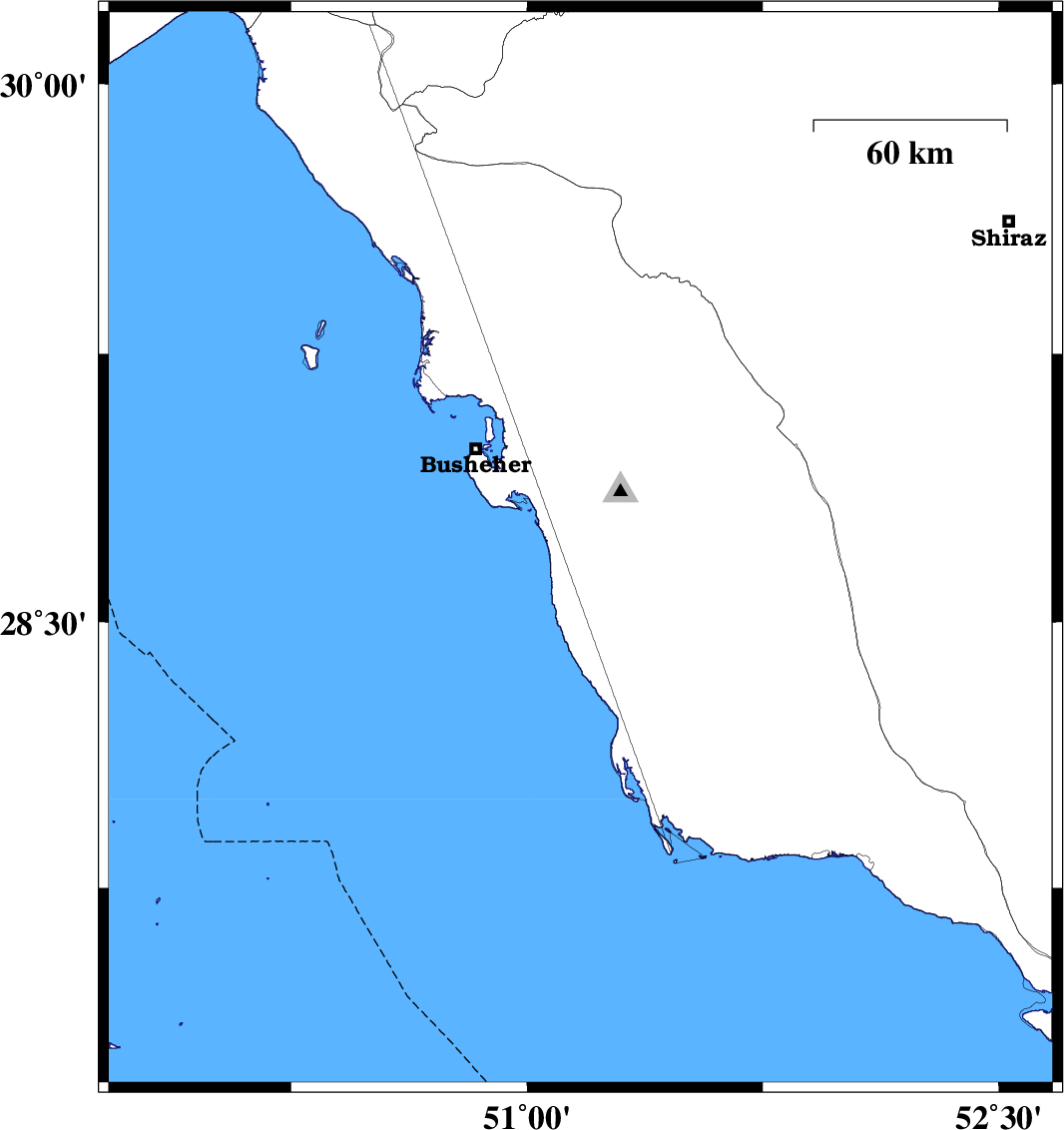 | 2015/03/09 | 23:19:24.9 | 02:49:24.9 | 29.45 | 51.19 | 14 | ML2.8 | Bushehr Province, 21 km North of Borazjan |