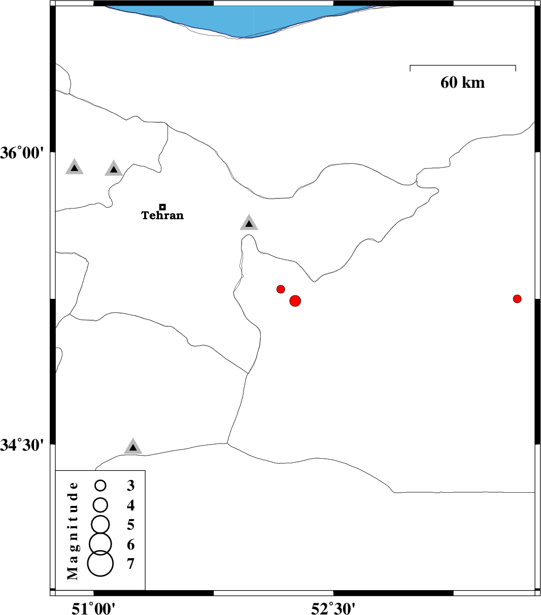 | 2015/04/01 | 03:18:50.3 | 07:48:50.3 | 35.3 | 52.17 | 14 | ML2.3 | Semnan Province, 18 km West of Garmsar |