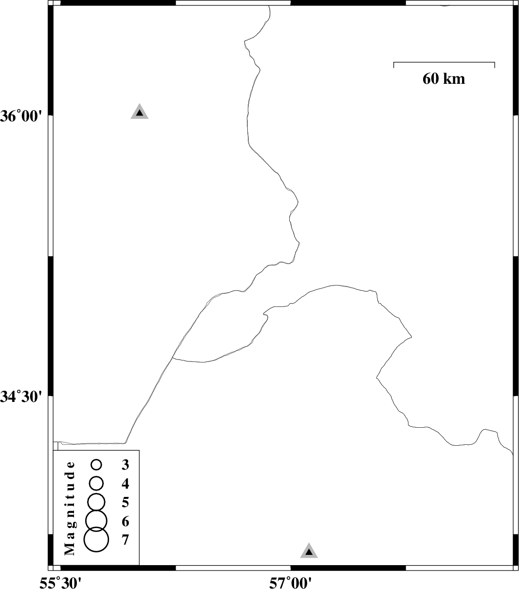 | 2015/04/09 | 02:22:34.8 | 06:52:34.8 | 35.08 | 56.95 | 14 | ML3.2 | Khorasan(center) Province, 93 km South-West of Bardeskan |