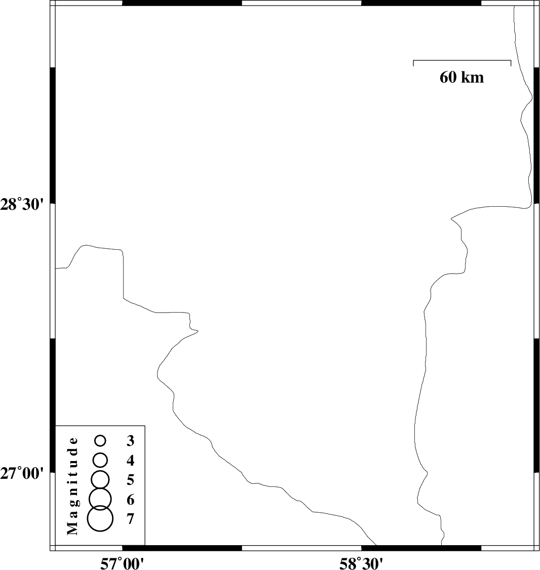 | 2015/04/12 | 20:15:30.6 | 00:45:30.6 | 28.09 | 58.08 | 15 | ML2.8 | Kerman Province, 41 km North-East of Kahnuj |
