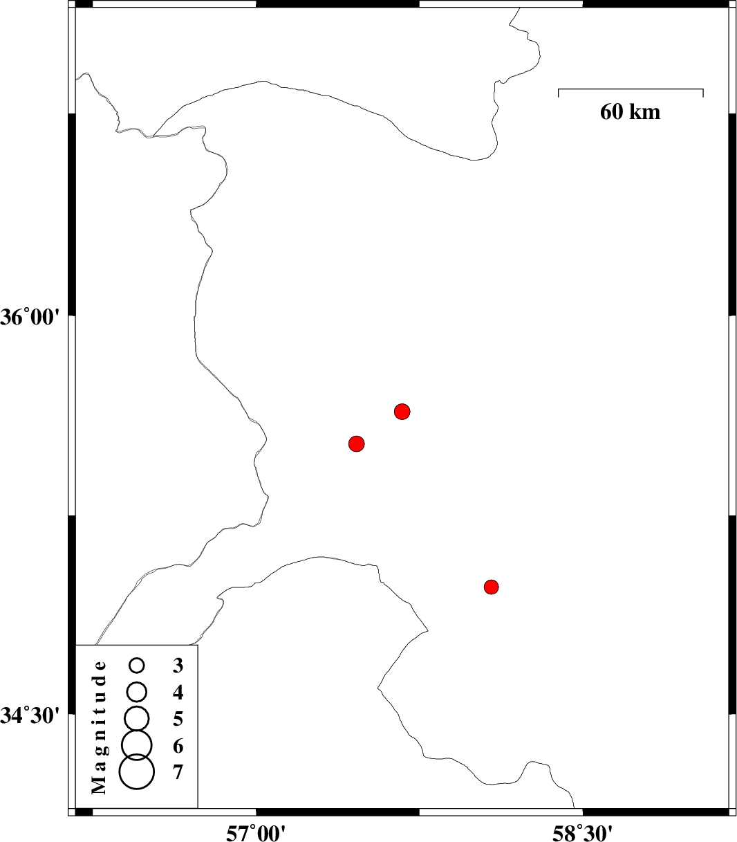| 2015/04/16 | 07:11:57.0 | 11:41:57.0 | 34.98 | 58.08 | 16 | ML3 | Khorasan(center) Province, 33 km South-East of Bardeskan |