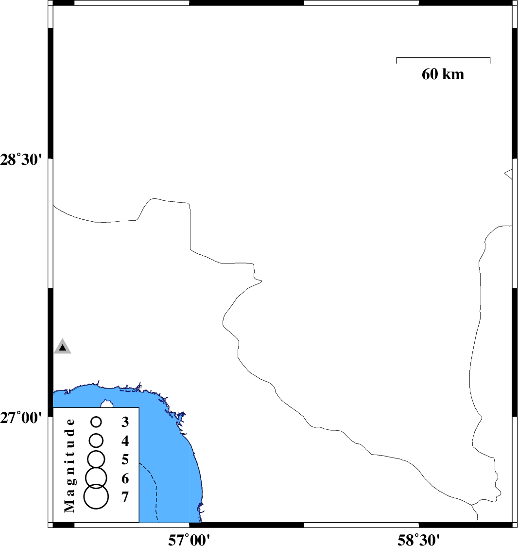 | 2015/04/29 | 01:47:36.6 | 06:17:36.6 | 27.88 | 57.61 | 14 | ML3.2 | Kerman Province, 11 km Kahnuj |