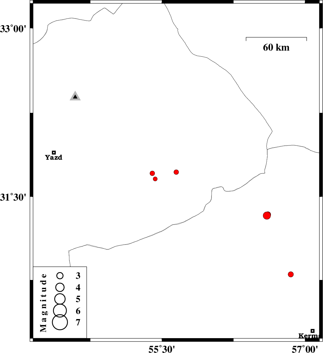 | 2015/05/03 | 09:53:32.3 | 14:23:32.3 | 31.66 | 55.43 | 14 | ML2 | Yazd Province, 7 km Bafq | ||