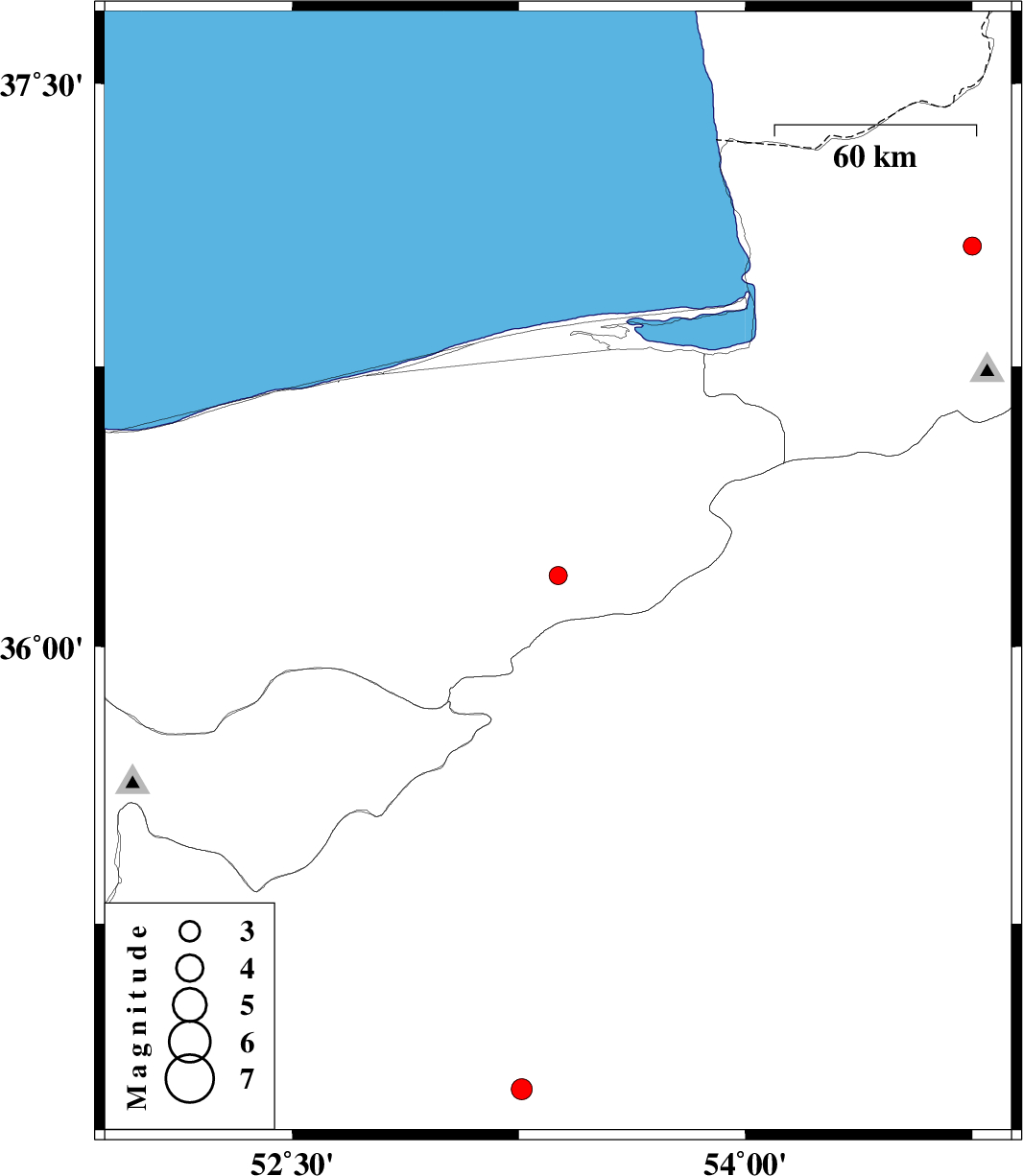 | 2015/05/06 | 22:37:56.1 | 03:07:56.1 | 37.07 | 54.75 | 31 | ML2.7 | Golestan Province, 21 km North-West of Ali Abad | ||