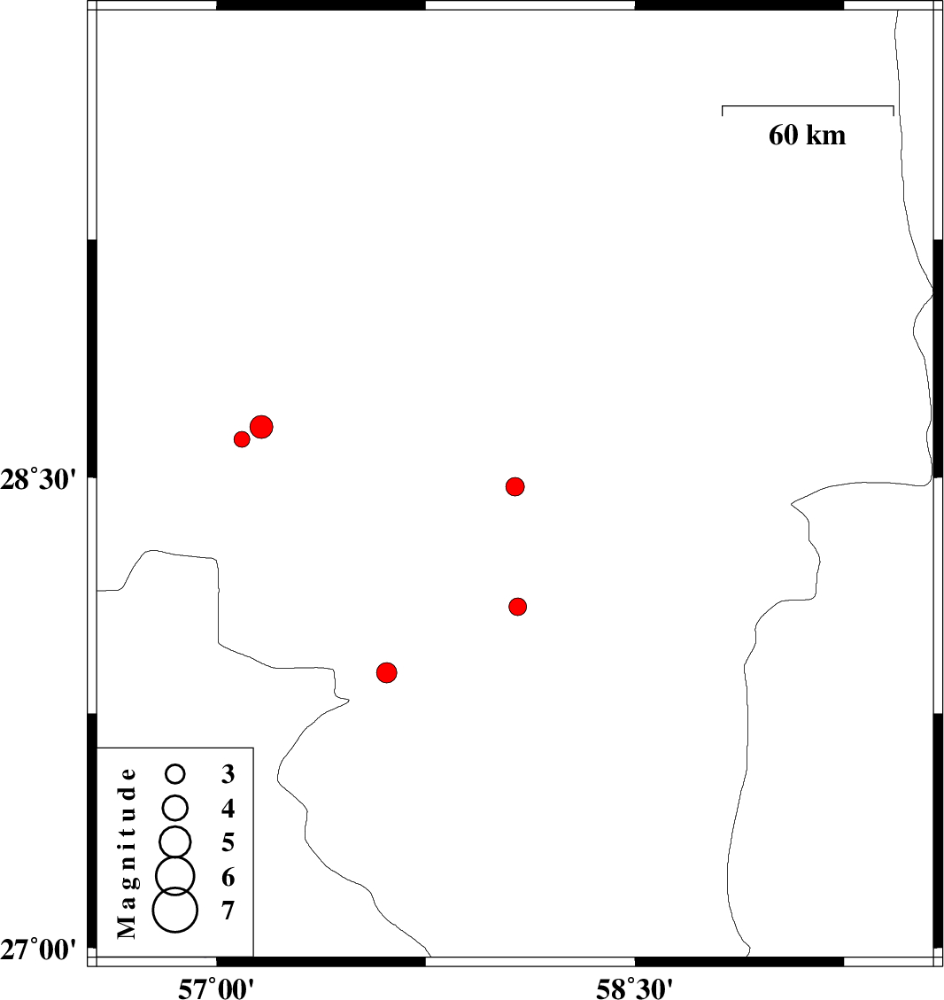 | 2015/05/08 | 03:36:33.3 | 08:06:33.3 | 28.47 | 58.07 | 18 | ML3 | Kerman Province, 39 km South-East of Jiroft | ||