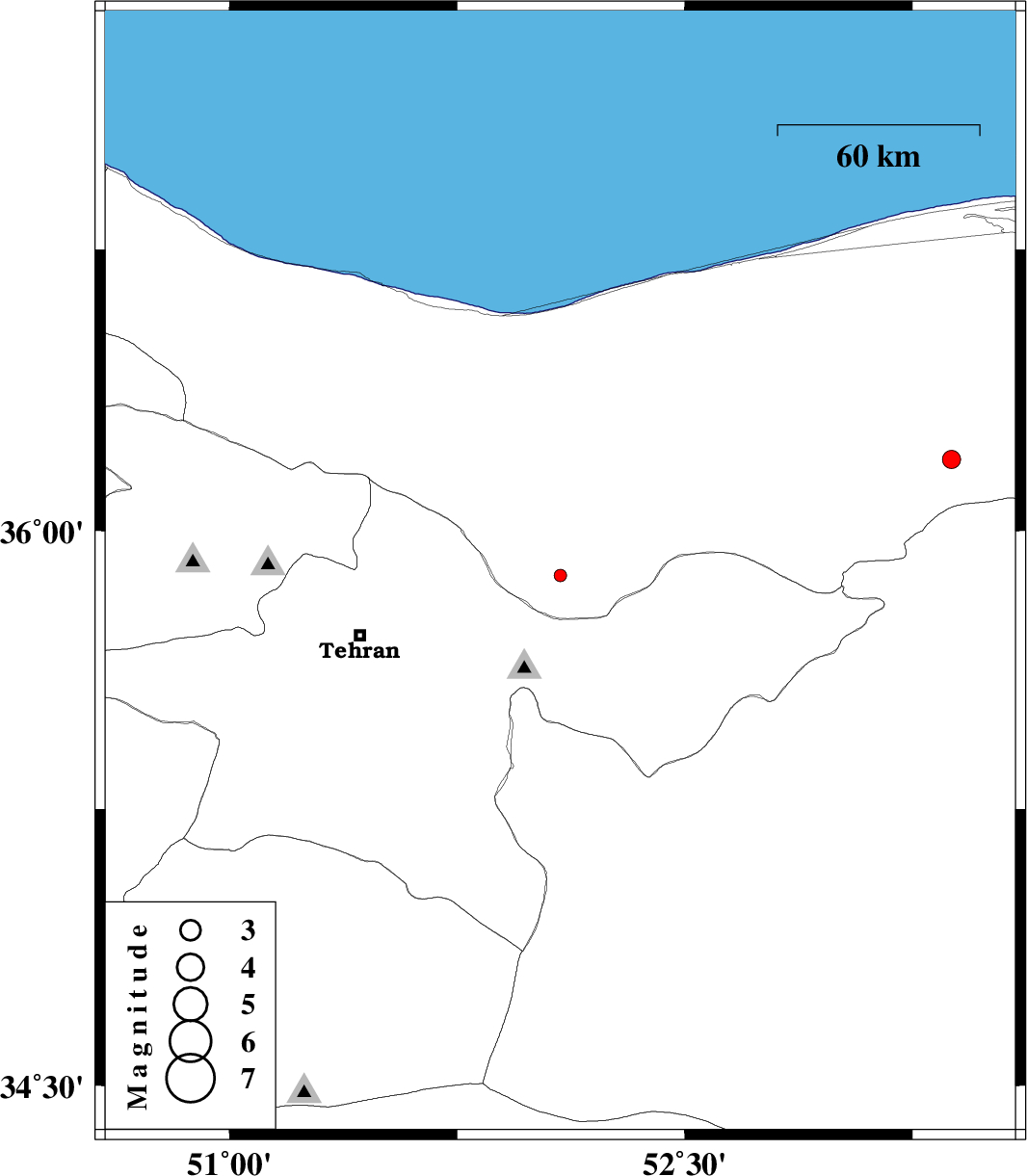 | 2015/05/08 | 03:34:22.6 | 08:04:22.6 | 36.19 | 53.38 | 14 | ML2.7 | Mazandaran Province, 30 km East of Pol-E-Sefid |