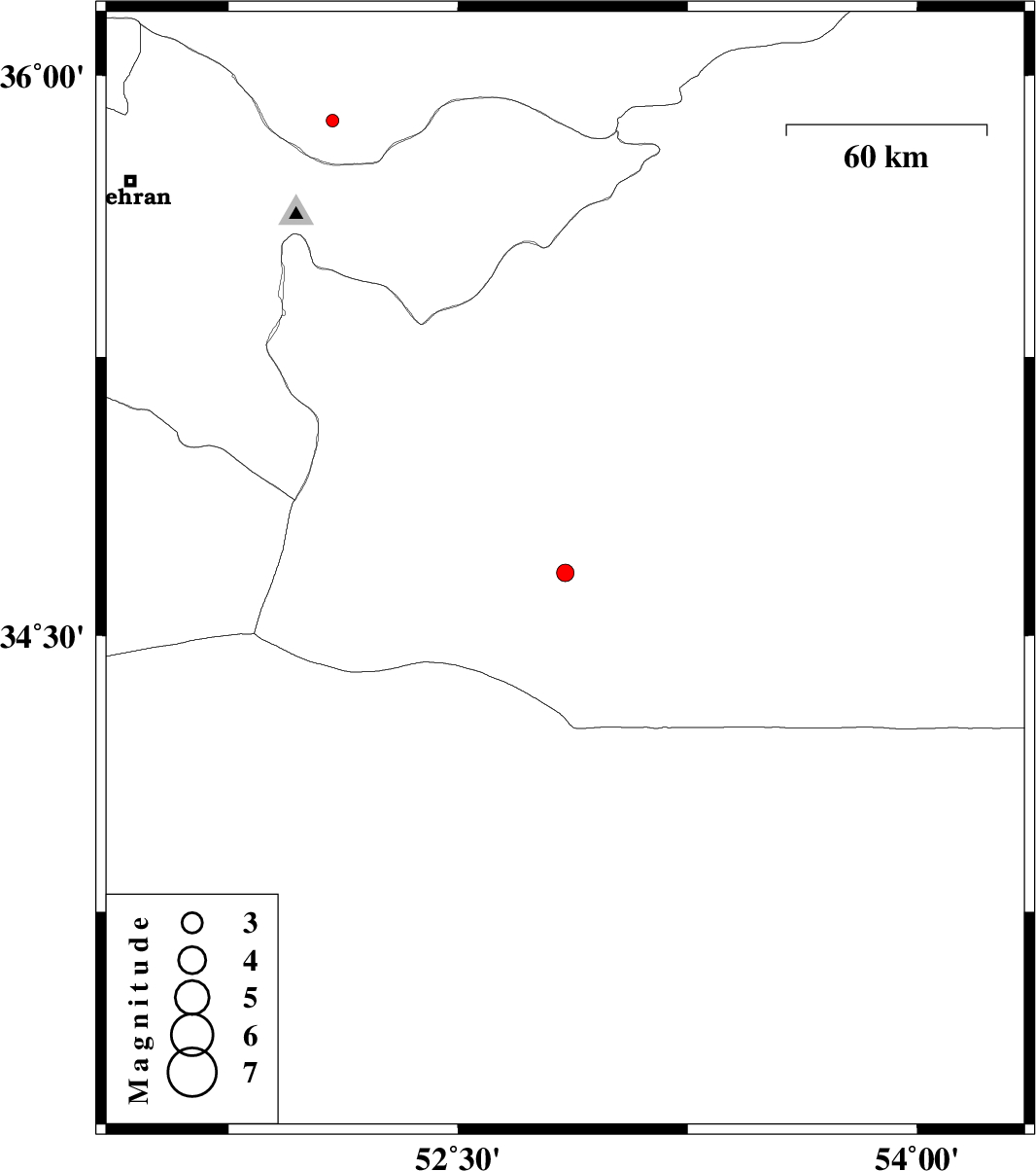 | 2015/05/14 | 07:15:34.5 | 11:45:34.5 | 35.88 | 52.09 | 14 | ML1.8 | Mazandaran Province, 18 km North of Damavand |