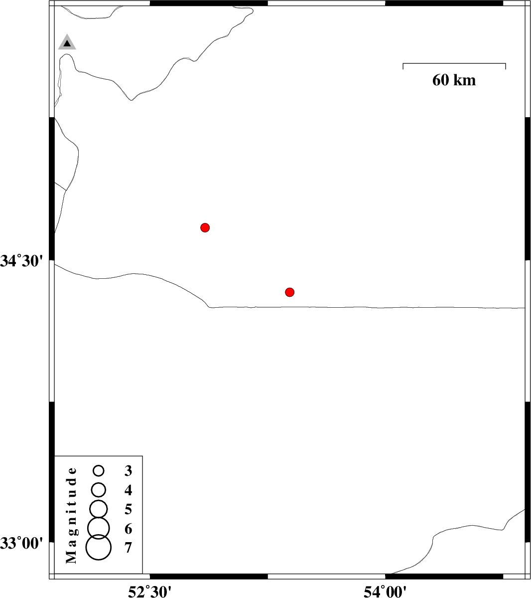 | 2015/05/15 | 14:39:16.8 | 19:09:16.8 | 34.67 | 52.85 | 37 | ML2.6 | Semnan Province, 76 km South-East of Garmsar |