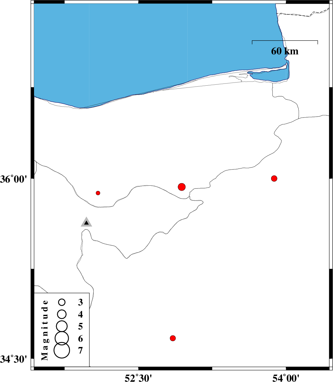 | 2015/05/14 | 07:15:34.5 | 11:45:34.5 | 35.88 | 52.09 | 14 | ML1.8 | Mazandaran Province, 18 km North of Damavand |