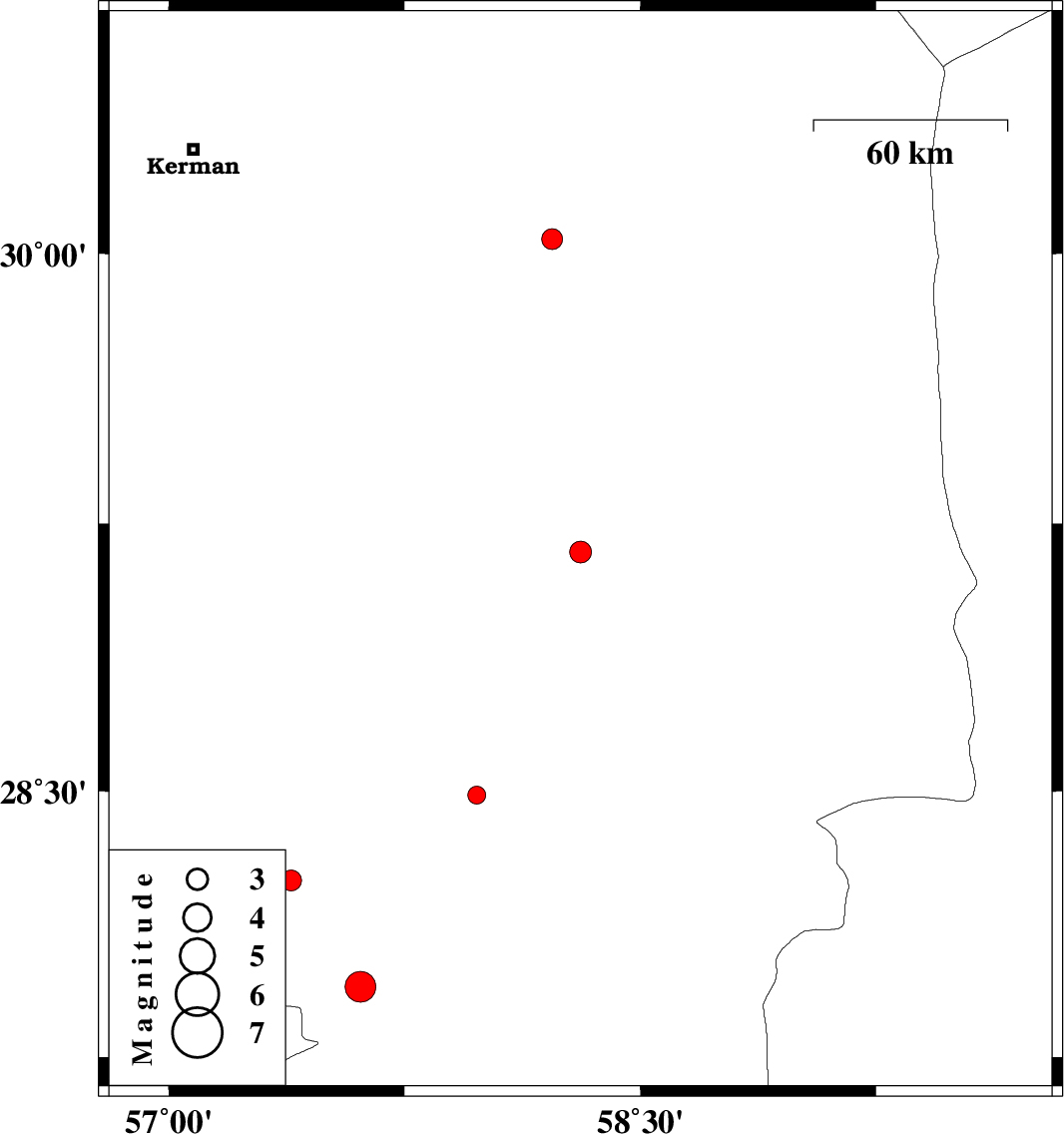 | 2015/05/18 | 11:03:31.3 | 15:33:31.3 | 30.04 | 58.22 | 15 | ML3 | Kerman Province, 105 km North-West of Bam | ||