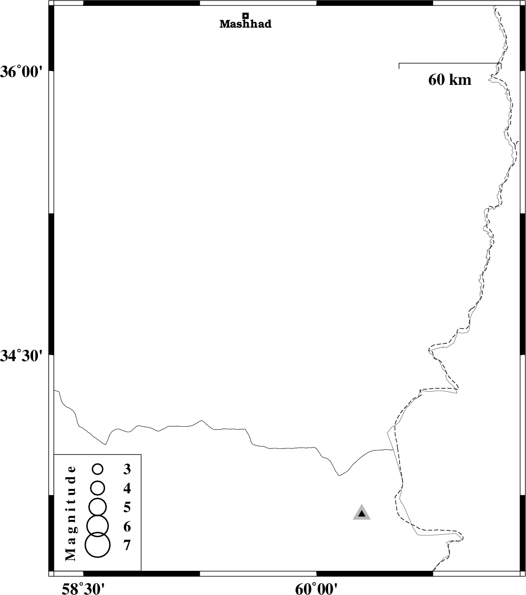 | 2015/05/29 | 17:59:27.3 | 22:29:27.3 | 34.84 | 59.81 | 14 | ML3.2 | Khorasan(center) Province, 42 km North-West of Khaf |