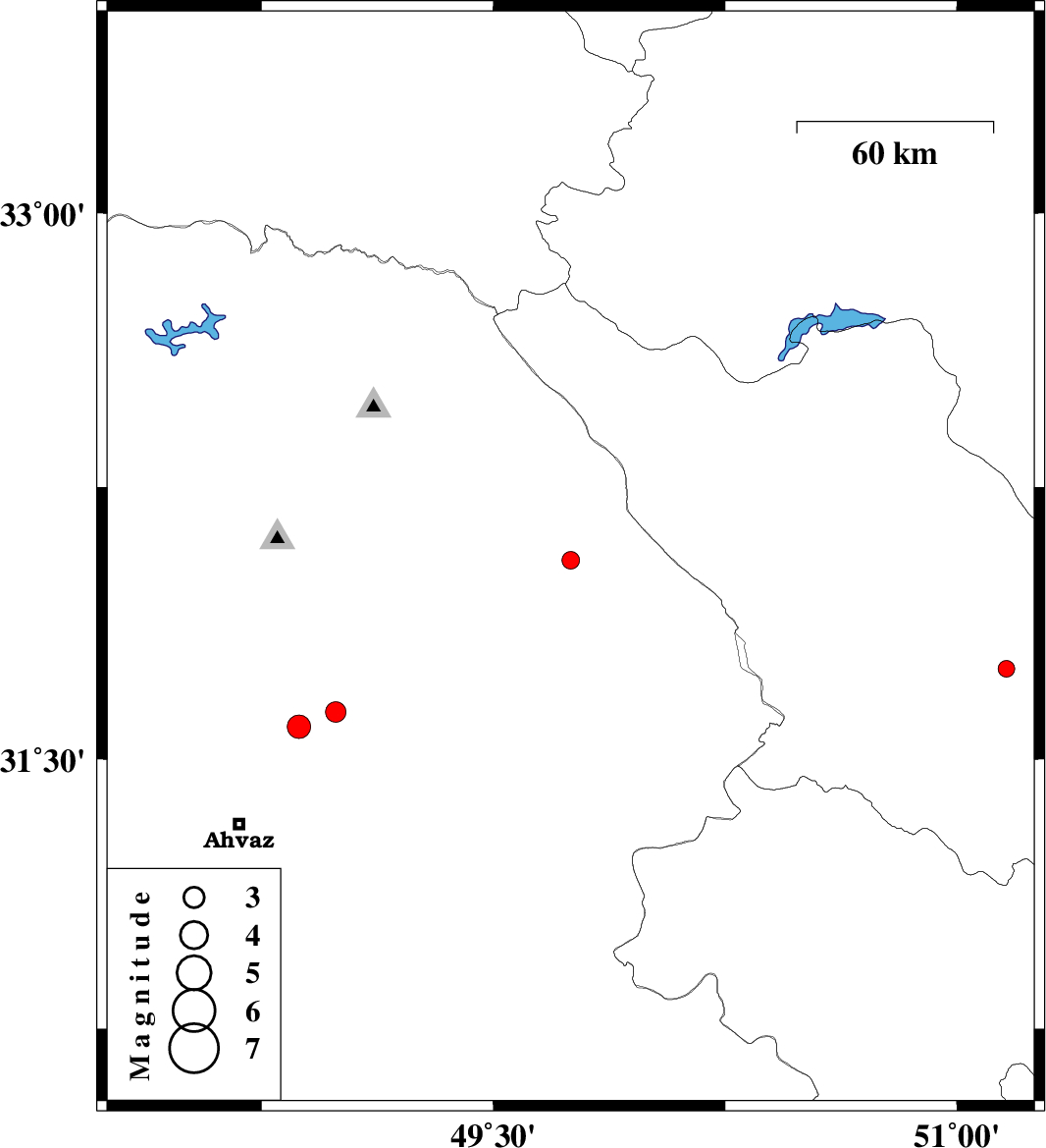 | 2015/06/03 | 19:33:35.3 | 00:03:35.3 | 31.59 | 48.87 | 10 | ML3.4 | Khoozestan Province, 35 km North-East of Ahvaz |