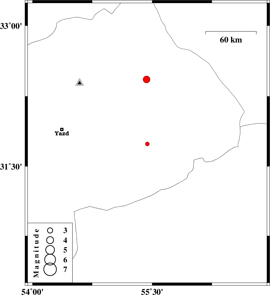 | 2015/06/17 | 23:05:43.2 | 03:35:43.2 | 32.43 | 55.43 | 14 | ML4 | Yazd Province, 91 km North of Bafq |