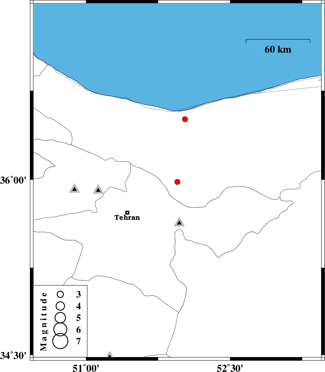 | 2015/06/20 | 14:42:59.4 | 19:12:59.4 | 35.98 | 51.95 | 15 | ML2.5 | Mazandaran Province, 32 km North-West of Damavand | ||