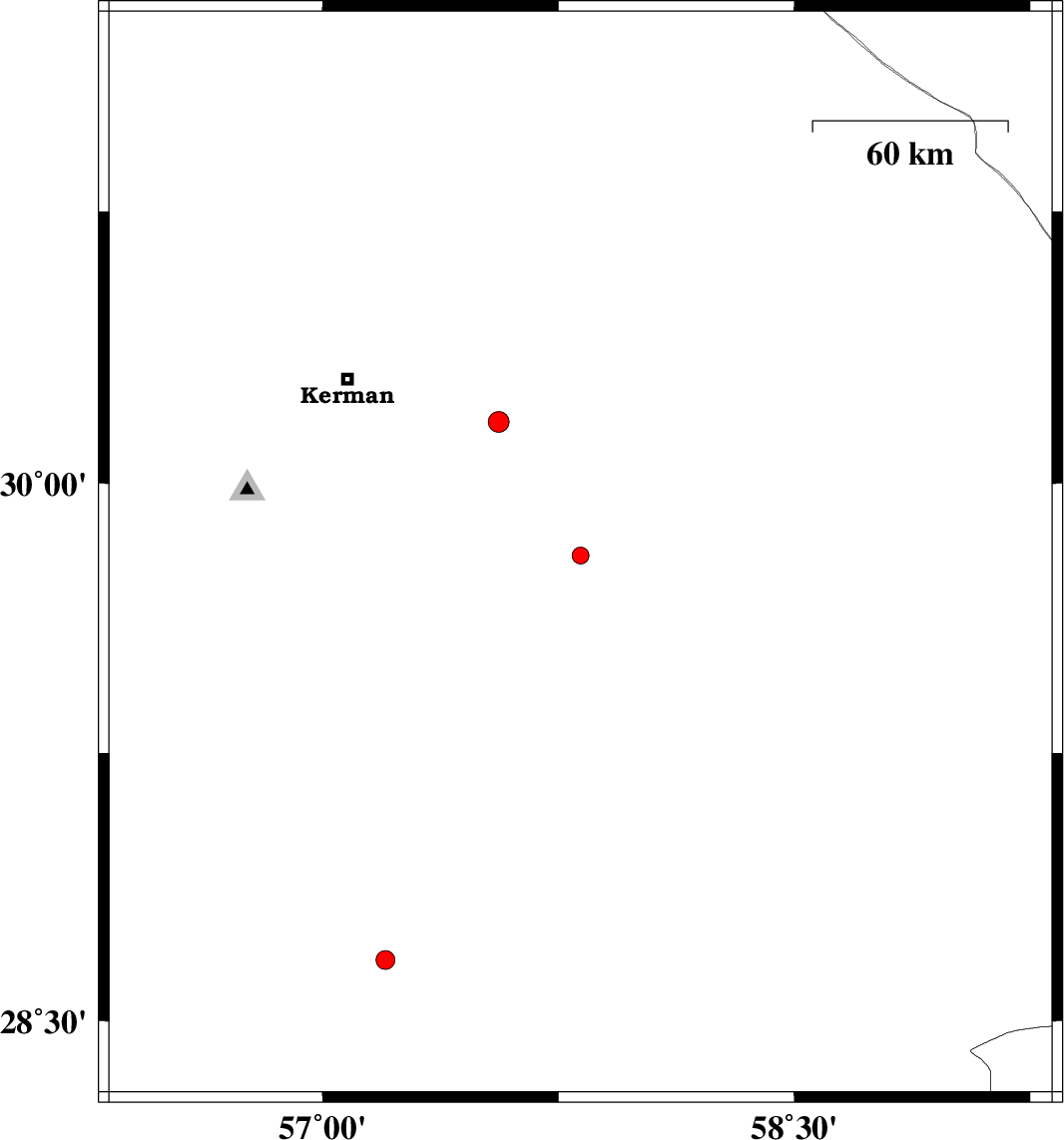 | 2015/06/19 | 00:38:40.0 | 05:08:40.0 | 30.17 | 57.56 | 14 | ML2.9 | Kerman Province, 48 km South-East of Kerman |