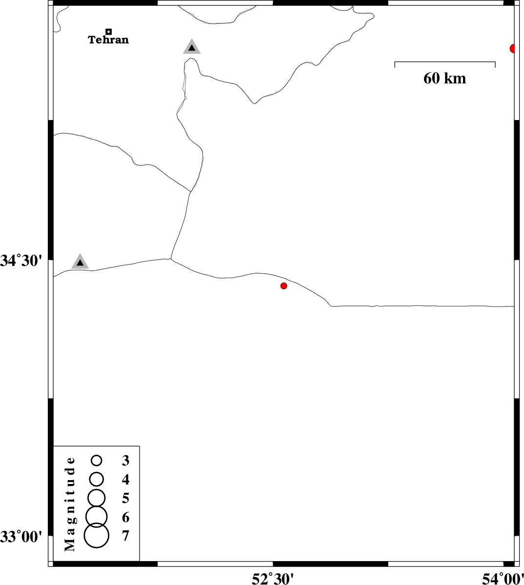 | 2015/06/20 | 02:59:22.4 | 07:29:22.4 | 35.63 | 54.07 | 14 | ML2.5 | Semnan Province, 61 km East of Semnan |