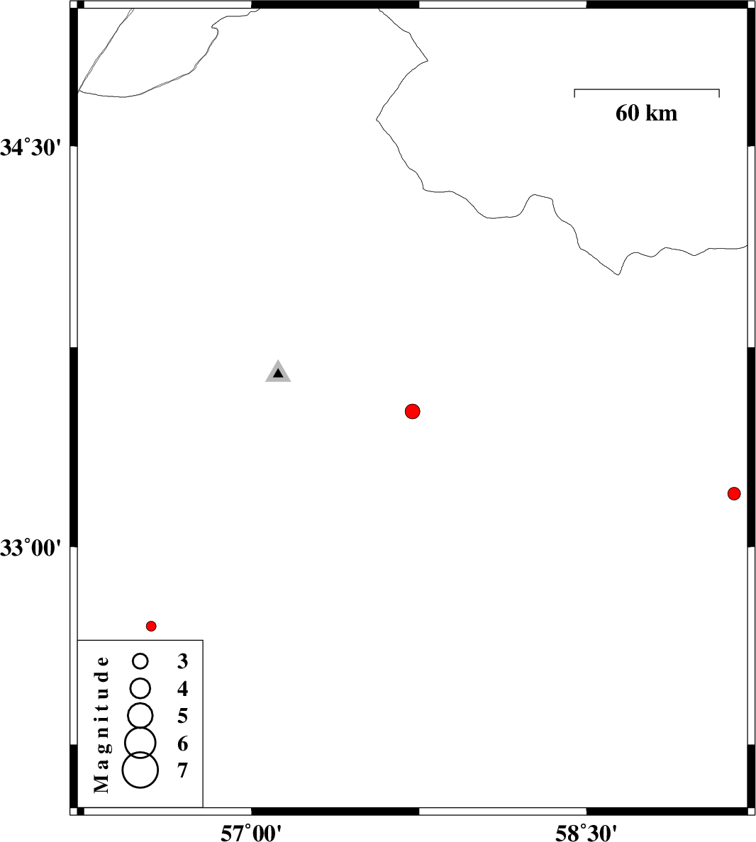 | 2015/06/22 | 07:17:12.8 | 11:47:12.8 | 32.7 | 56.55 | 14 | ML2 | Yazd Province, 106 km South-West of Tabas |