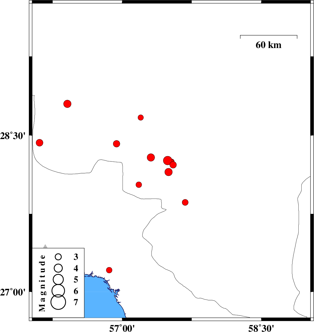 2015/06/07 04:40:45.1 09:10:45.1 27.8657.6814 ML3 Kerman Province, 11 km Kahnuj
